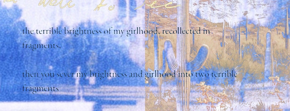 “Tell me if it’s too much,” they said, kneeling to the ground and pulling me by my ankles to the edge of the bed. I felt them reach inside me, press their fingers in until they wouldn’t go any further. They lowered their mouth, licked me raw. I felt the panic turn paralytic in my bloodstream, imagined the left side of myself sinking through the mattress; a body made waning moon—half of it elsewhere, searching for something more beautiful.